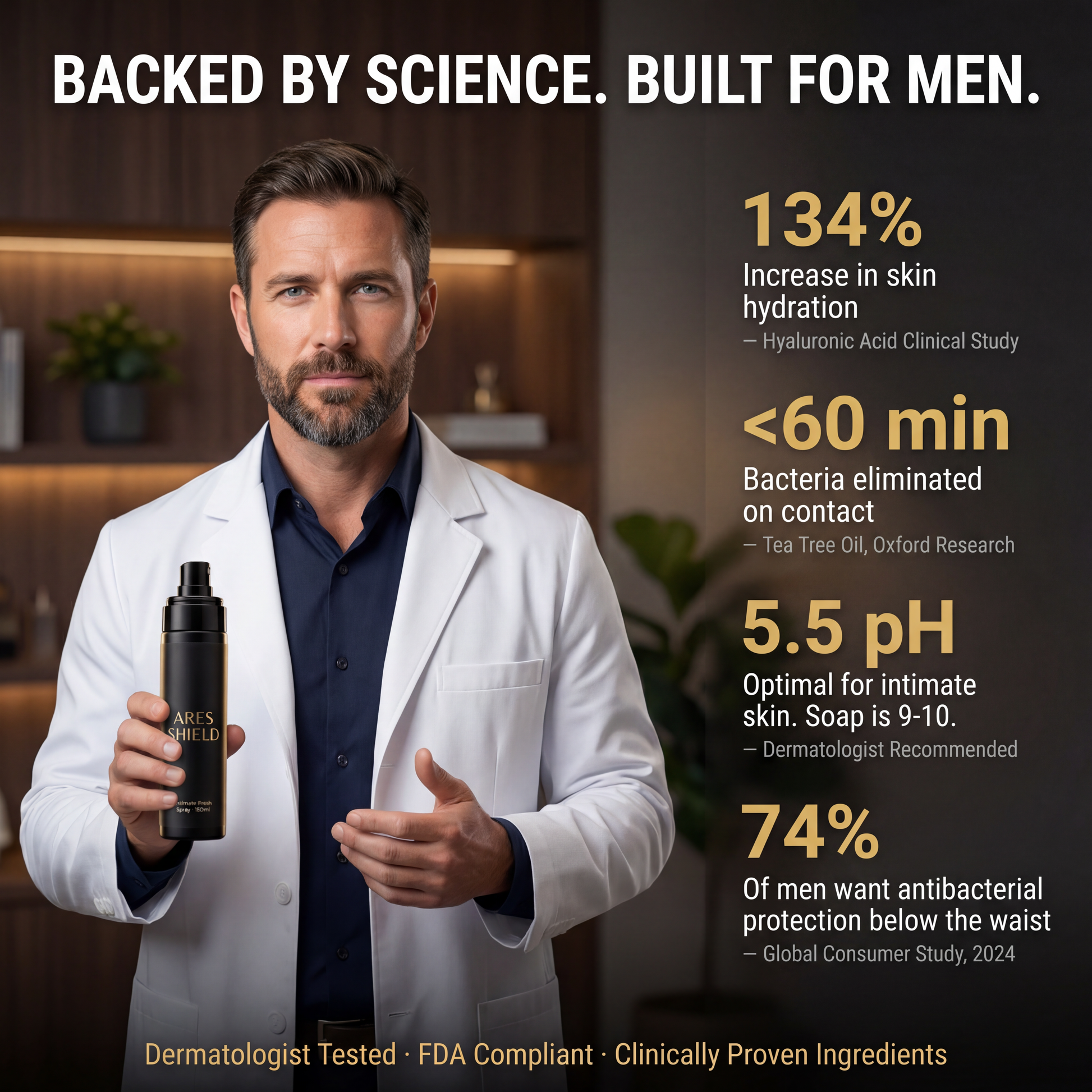 formulado a pH 5,5 para igualar y proteger la piel íntima masculina, a diferencia de los aerosoles corporales genéricos